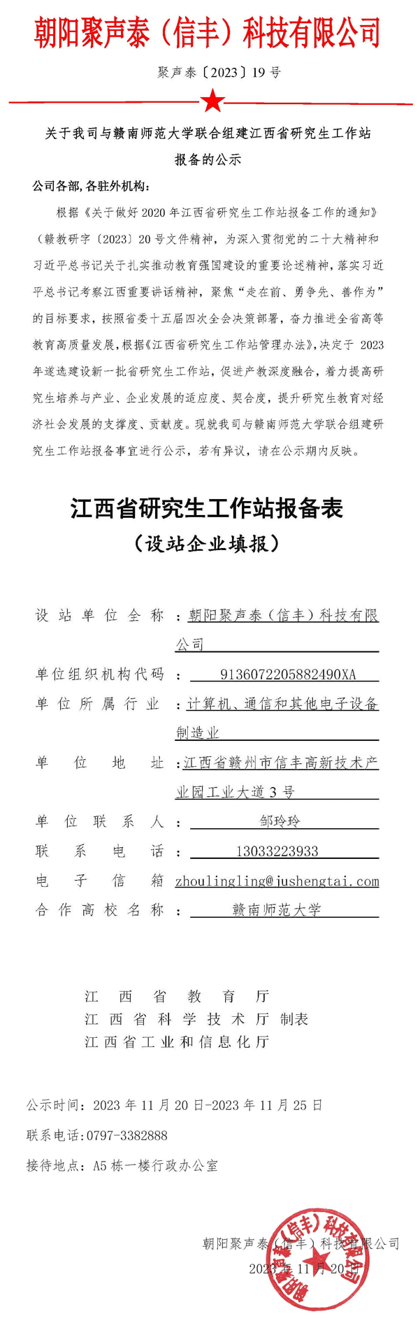 與贛南師范大學聯合組建江西省研究生工作站報備的公示