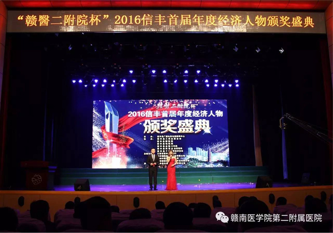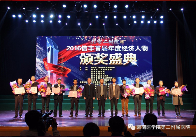 3月12日下午,“贛醫二附院杯”2016信豐首屆年度經濟人物頒獎盛典在信豐縣文化藝術中心圓滿落幕。贛醫二附院黨委副書記、院長林金秤出席并致辭。