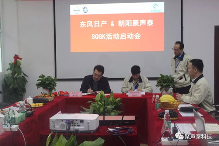 12月6日,東風日產質量保證部部長森英昭一行三人蒞臨朝陽聚聲泰(信豐)科技有限公司(以下簡稱朝陽聚聲泰),進行了SQGK活動的啟動儀式。