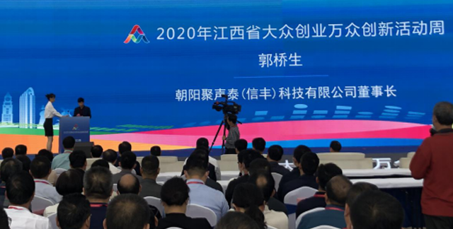 此次活動全市共有18家企業受邀參加了這次活動參展,朝陽聚聲泰(信豐)科技有限公司作為信豐縣“雙創”示范企業參與,通過云啟動、云展覽等平臺開展活動,展示信豐縣企業創新創業的新風采新風貌,不僅濃厚了“雙創”氛圍,更取得了良好的成效。公司董事長郭橋生入選全省2名創客代表之一出席啟動儀式,并發布創新創業倡議書,引領創業時尚新潮。