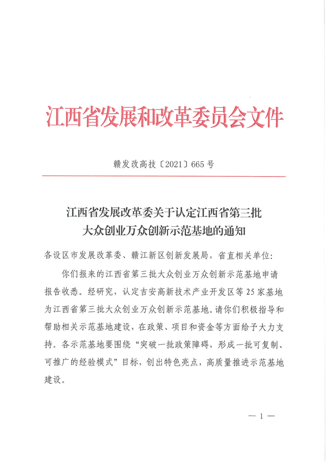 近日,省發改委印發《江西省發展改革委關于認定江西省第三批大眾創業萬眾創新示范基地的通知》(贛發改高技〔2021〕665號),我公司認定為江西省第三批大眾創業萬眾創新示范基地。朝陽聚聲泰長期堅守“公司興科技、科技興公司”的科學發展觀,堅信“大眾創業、萬眾創新”是經濟活力之源,也是企業生存發展之本。